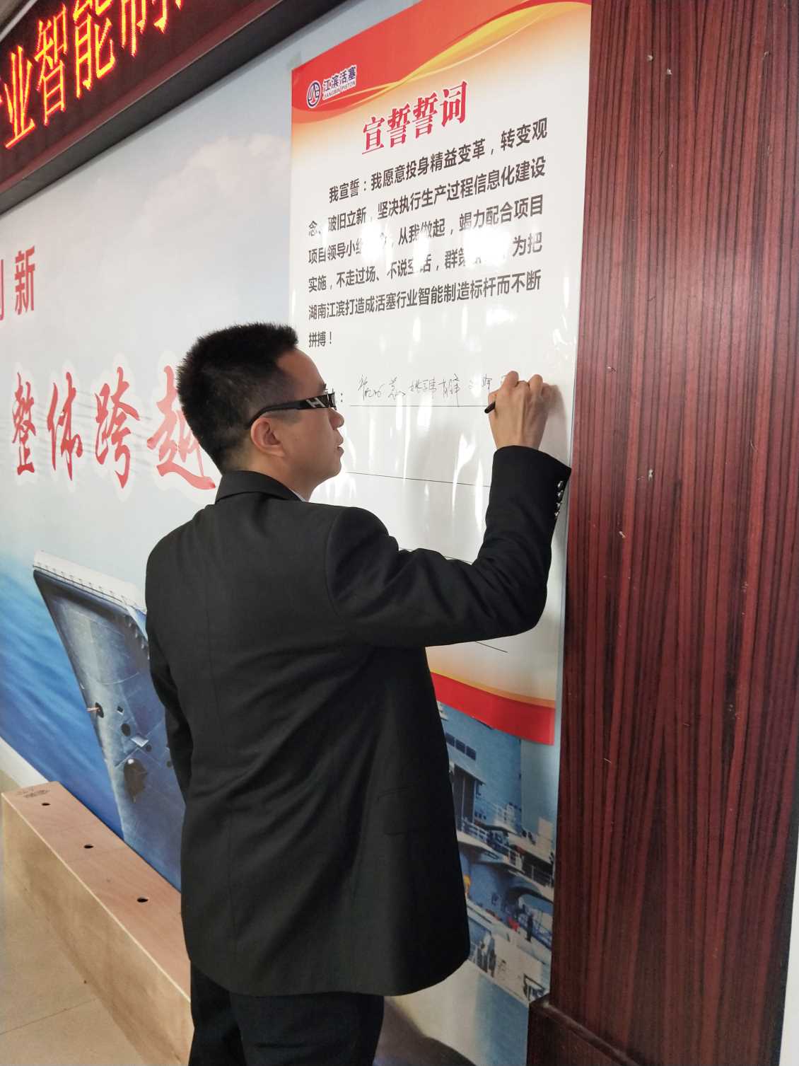 ▲中创智能项目尹总监及项目成员在宣誓书上郑重签下自己的名字
