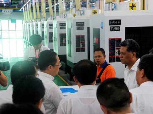 2017年6月15日上午10:30,广东省省委副书记、省长马兴瑞,副省长袁宝成,东莞市市委书记吕业升,市委副书记、市长梁维东一行20余人莅临劲胜东城国家智能制造示范车间参观调研,劲胜精密总裁王建先生全程陪同并向马省长一行详细讲解了劲胜精密发展历程,以及劲胜国家智能制造示范点建设的基本情况,对于马省长的疑问给予了针对性的解答。