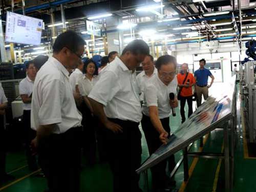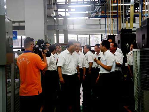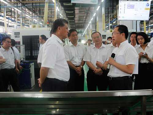 - 2025-09-01 10:06:13 4月25日下午,全国政协卢展工副主席、全国政协委员视察团、省政协袁宝成副主席、市委常委、统战部部长骆招群、市发改局、市经信局、科技局等领导一行,来到东城智能车间