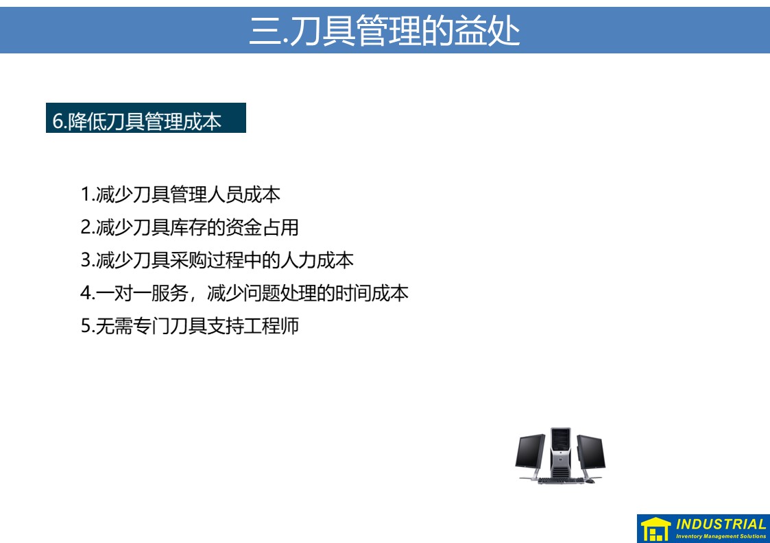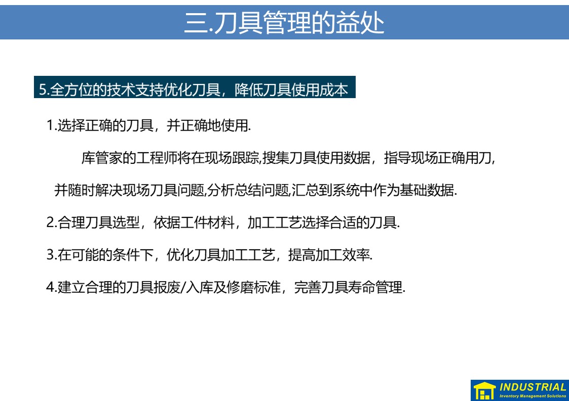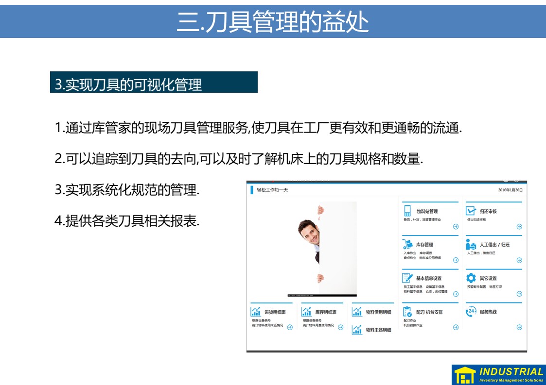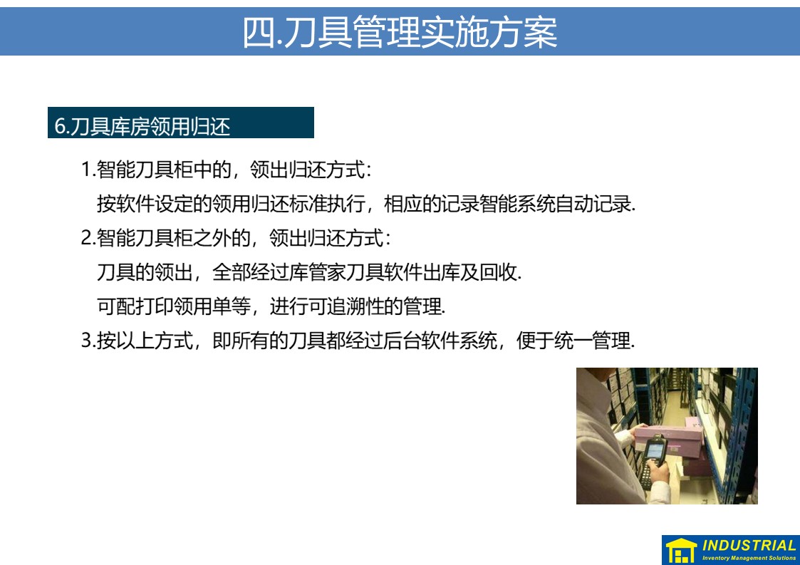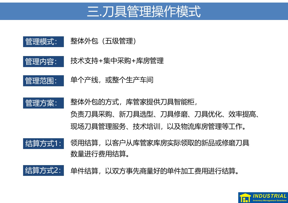 规范解决刀具现场领用、归还,夜班无人值守等问题,实现刀具“无人线边仓”,与企业ERP或MES数据对接,实现了刀具全流程管理的解决方案。