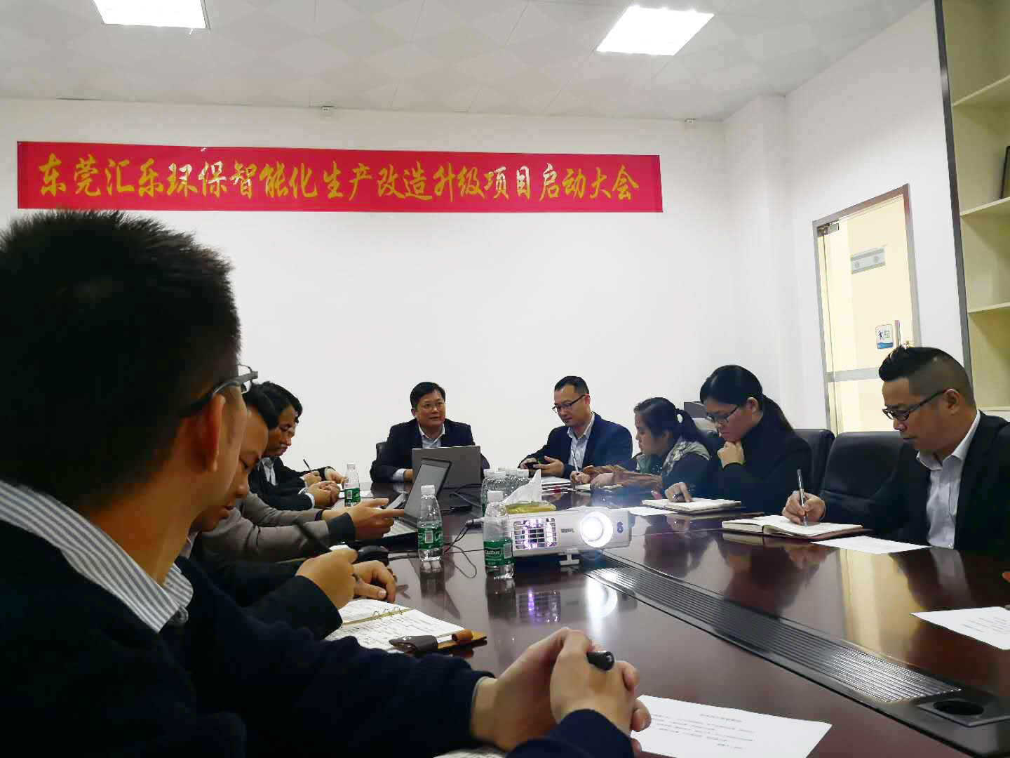 ▲汇乐环保林卫波董事长表达了对智能化生产改造升级的决心与信心,对项目组提出严格要求,并现场发布项目激励制度,预祝项目取得圆满成功