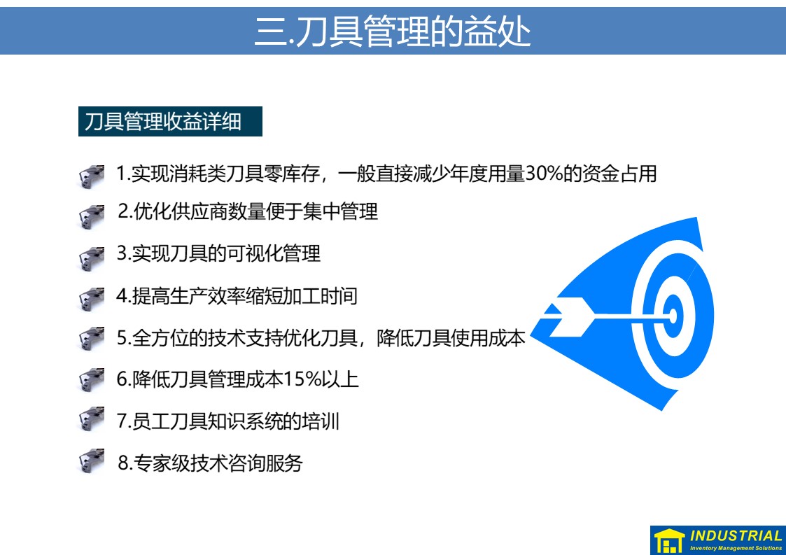 规范解决刀具现场领用、归还,夜班无人值守等问题,实现刀具“无人线边仓”,与企业ERP或MES数据对接,实现了刀具全流程管理的解决方案。